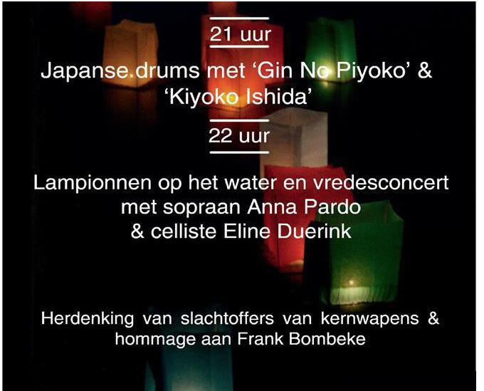Na een kort inhoudelijk luik en een speech van het Gentse stadsbestuur volgt een tweede luik van het muzikaal programma met de sopraan Anna Pardo en de celliste Eline Duerinck die samen concerteren vanop een houten gondel. Onder begeleiding van deze stemmige muziek plaatsen we samen lampionnen op het water voor alle oorlogsslachtoffers, en in het bijzonder de slachtoffers van de kernbommen op Hiroshima en Nagasaki, 73 jaar geleden.