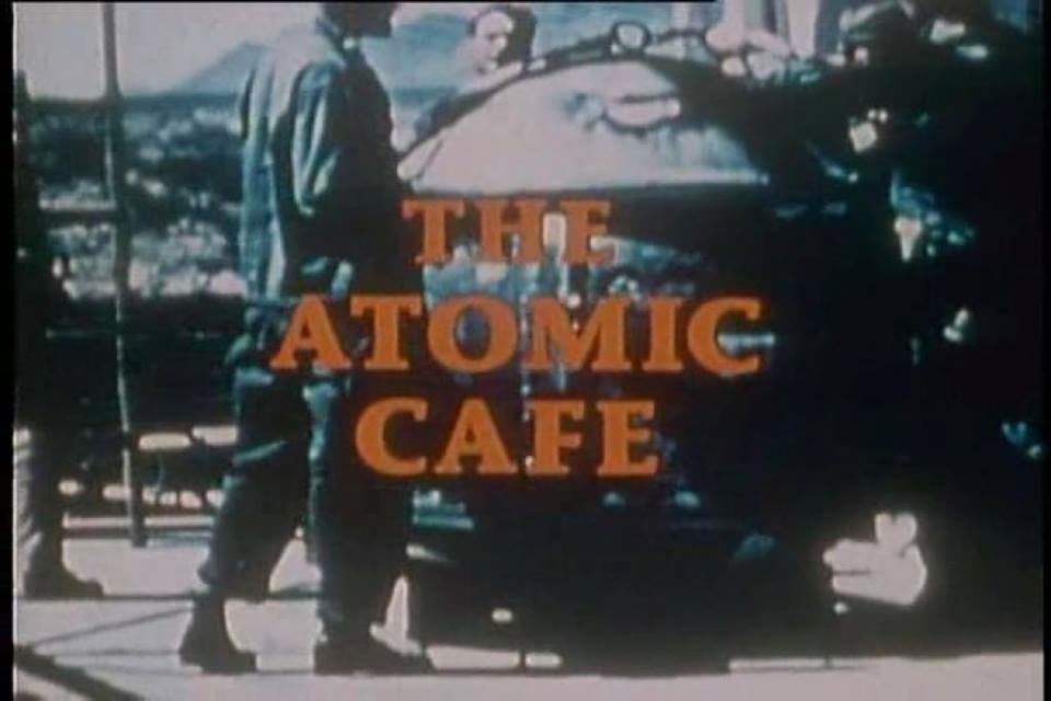 ot scherm van de film ‘The Atomic Café’ in de kantine van DOK (site gelegen op de splitsing van de Koopvaardijlaan en de Afrikalaan, Gent).
