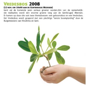 Op initiatief van het Vredesoverleg Gent werd de Burgemeester van Hiroshima, voorzitter van Mayors For Peace, uitgenodigd voor de eersteboomplanting: Beeldverslag